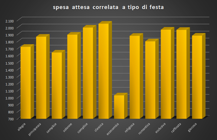 Attribuendo una valorizzazione media alle fasce di costo, una prospezione legata al tipo di festa che si è detto di apprezzare